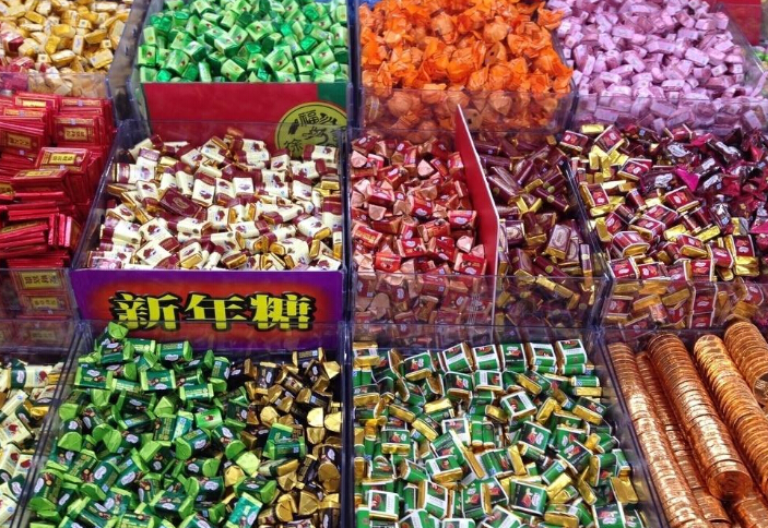 有包裝的散裝零食陳列時就隨意了很多,可以直接擺放在敞開式的靠墻散裝零食柜或中島散裝食品貨架上,方便顧客挑選。
