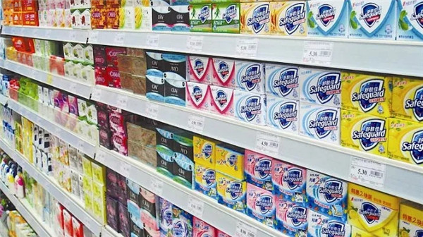 洗滌用品最好不要與食品類的商品陳列在一起,所以使用1-2組單面貨架,單獨將它們陳列在小超市內部的墻面上,以備顧客的不時之需。