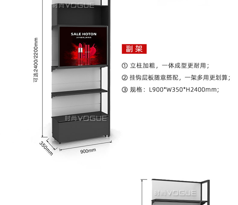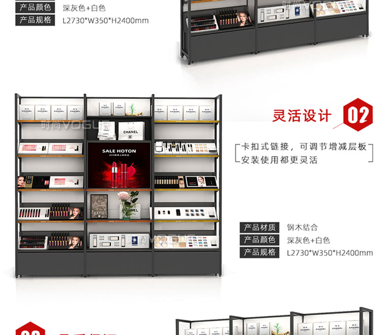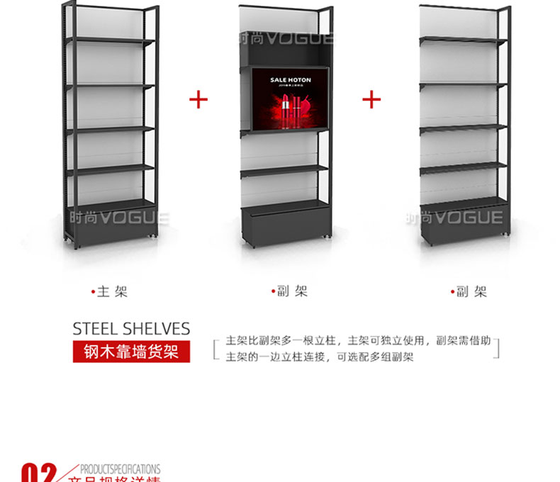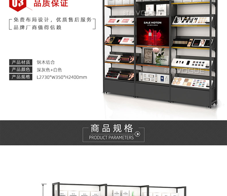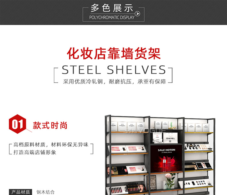 - 產(chǎn)品描述:【深圳時(shí)尚貨架】廠家直銷(xiāo)化妝品店靠墻貨架/化妝品單面貨架/鋼木結(jié)合靠墻背柜等,是專(zhuān)注于品牌店鋪服務(wù)的陳列道具供應(yīng)商。