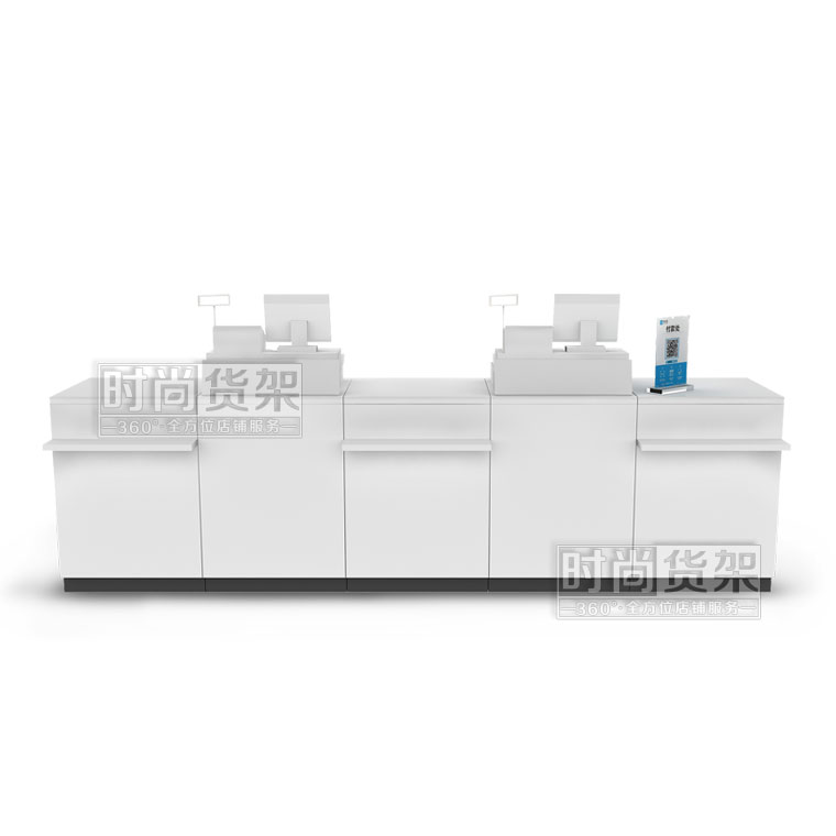 • 產品描述:這款藥店鋼木收銀臺是時尚貨架最新打造的一款適用于藥店收銀區使用的柜臺。