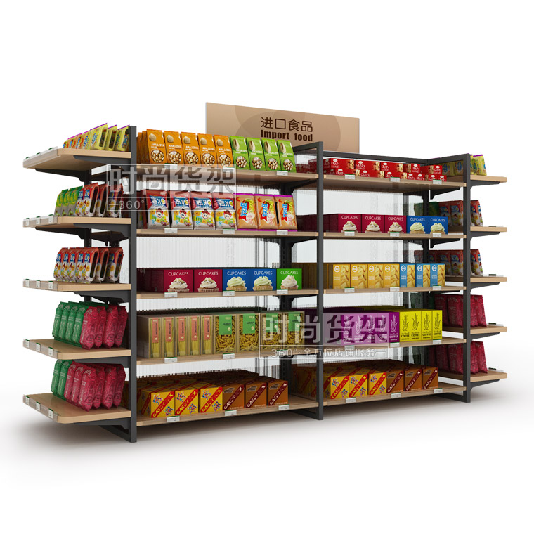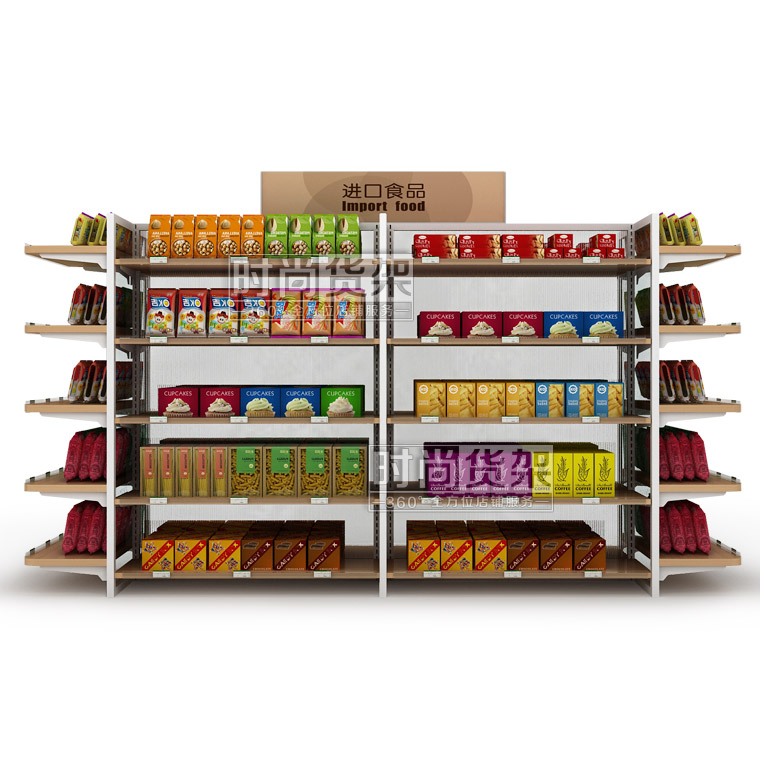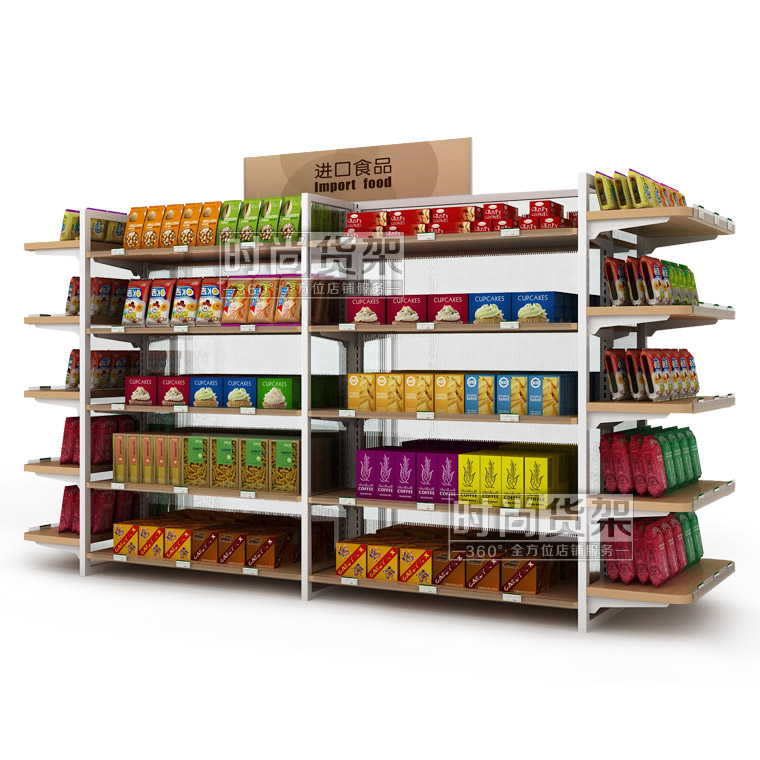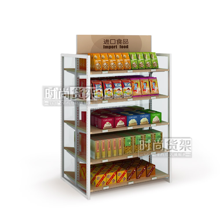 【描述】便利超市食品貨架整體框架由優(yōu)質冷軋鋼材精制而成,使用壽命長久,承重超乎想象。高檔環(huán)保的木質層板,更具時尚感,再配合透光性強的陽光背板設計,有效增強商品展示效果。