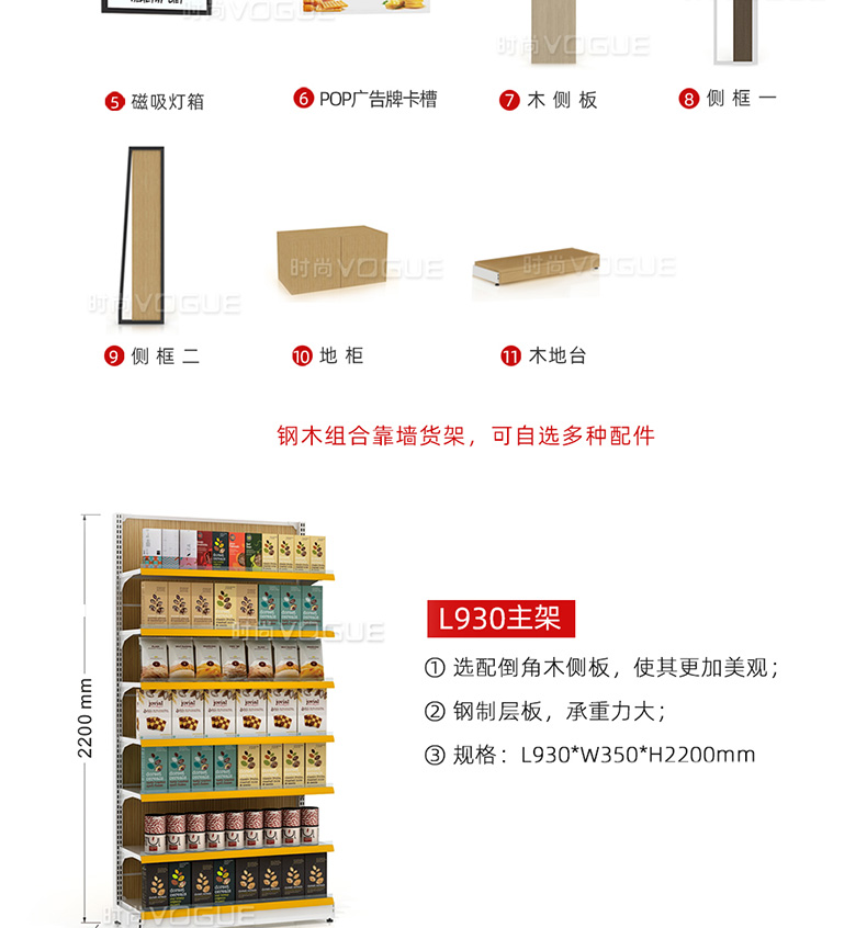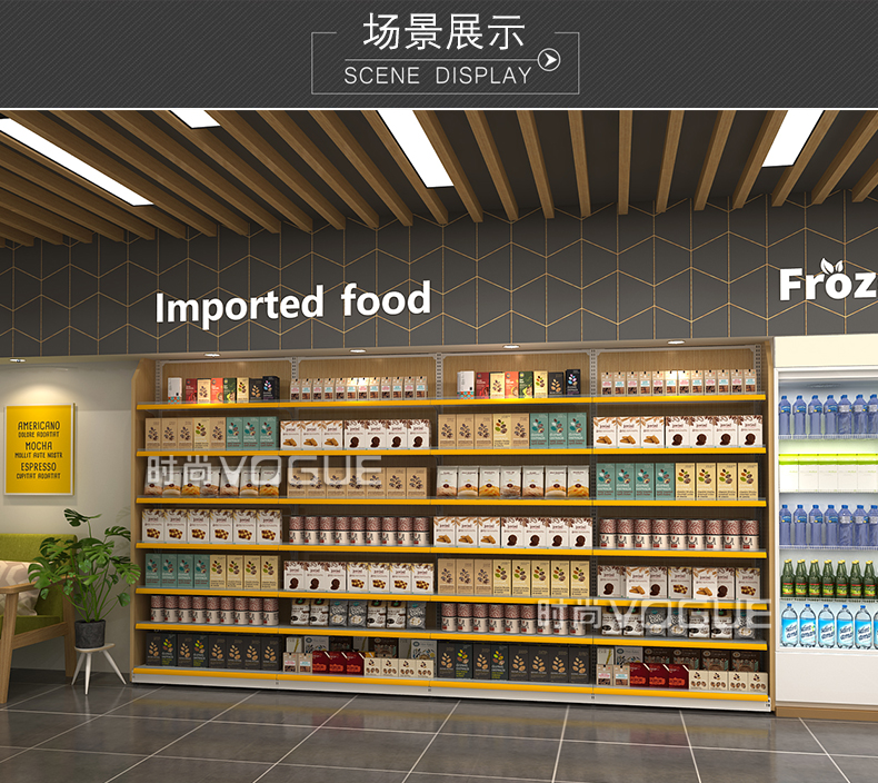 - 產(chǎn)品描述:便利店貨架廠(chǎng)家【時(shí)尚貨架】推出的這款進(jìn)口食品貨架適用于便利店食品區(qū),商品展示效果佳,能有效提升便利店整體形象。