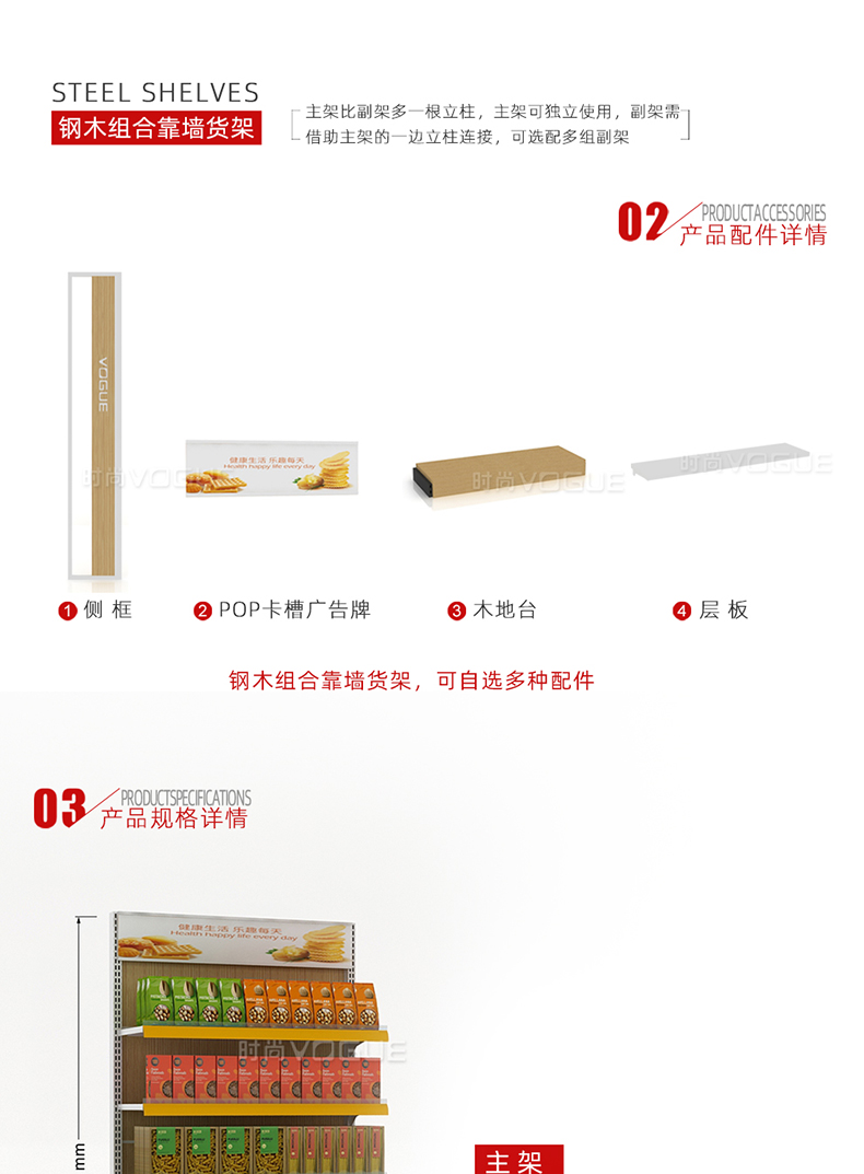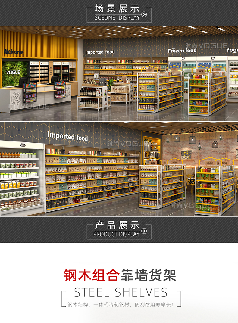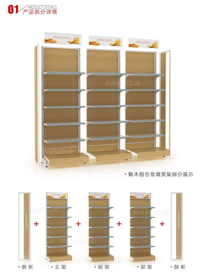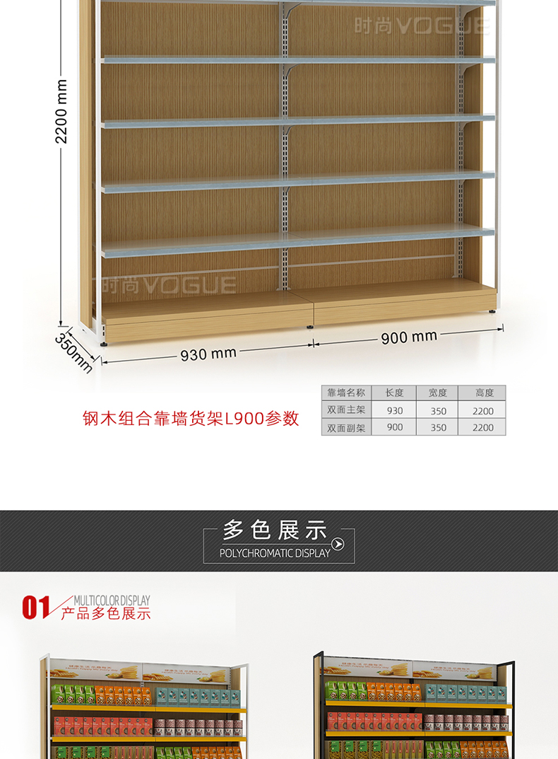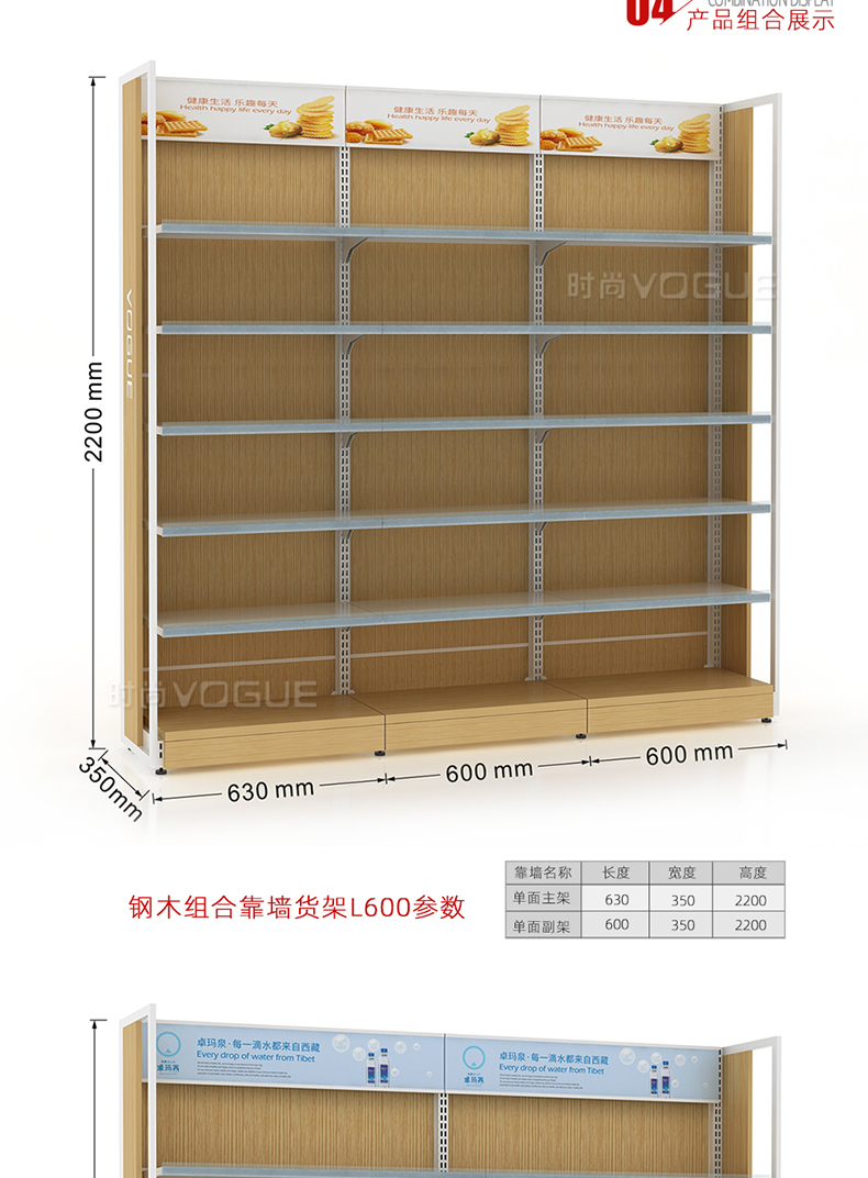 便利店貨架_木背板半木側(cè)框帶地臺(tái)