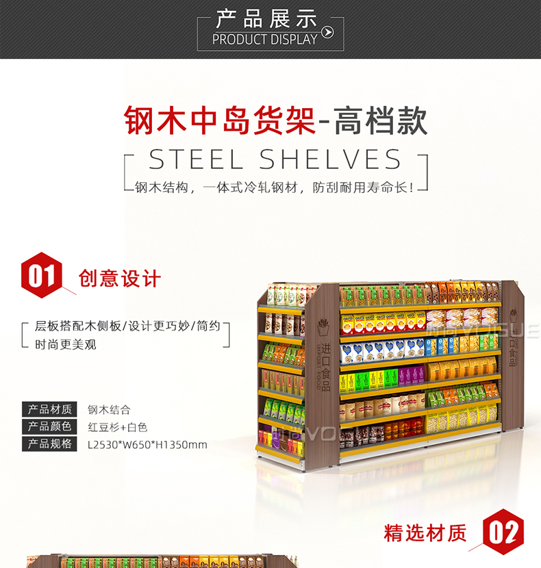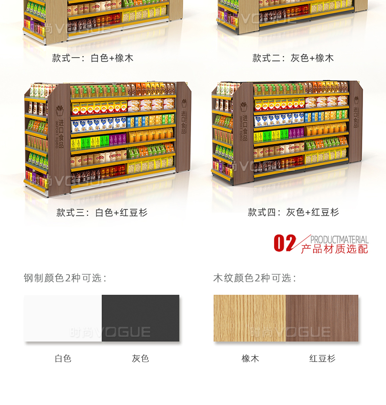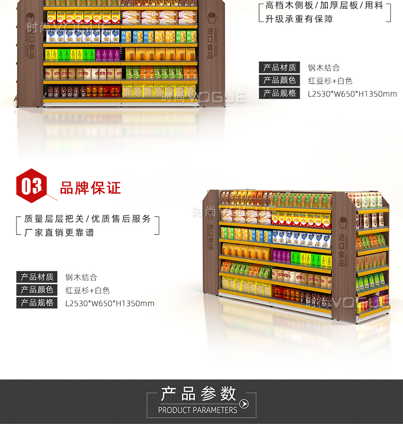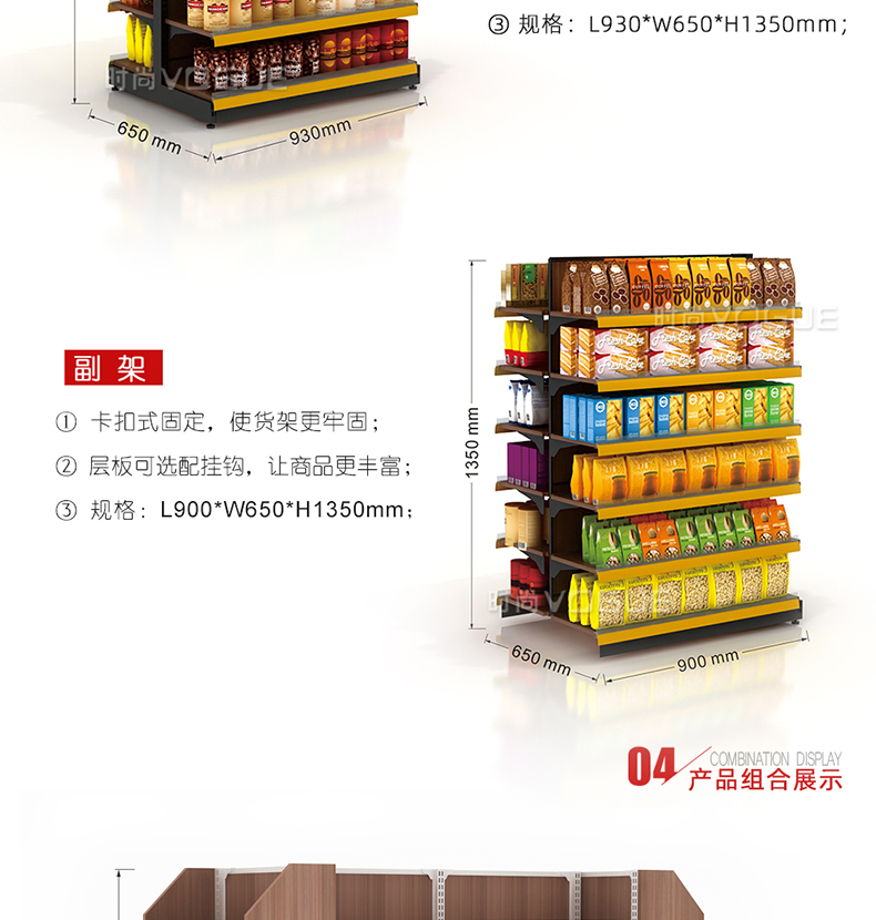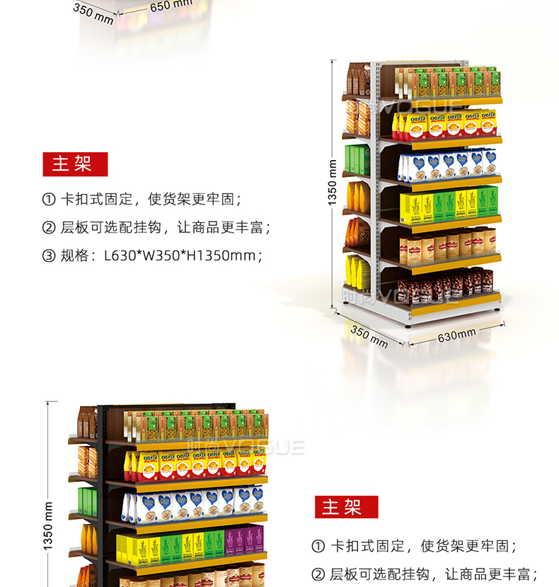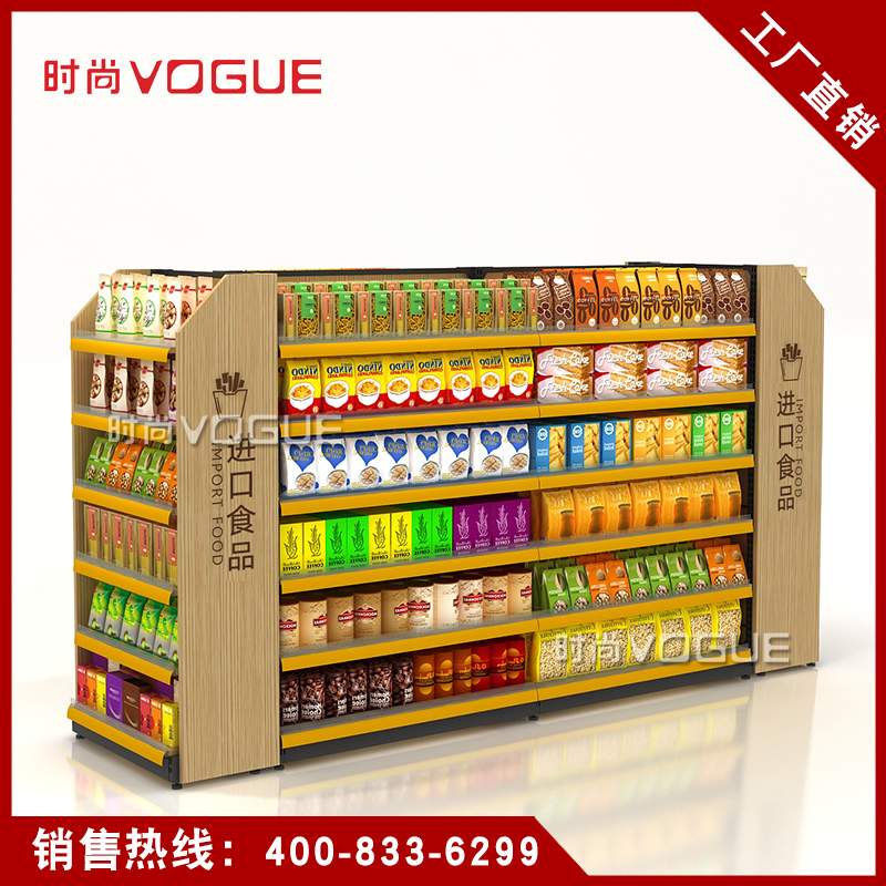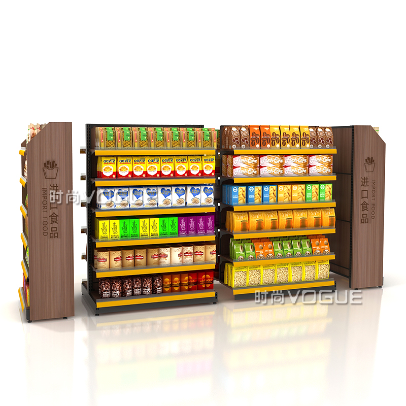 • 產品描述:便利店雙面零食貨架由深圳貨架廠時尚貨架打造,應用于便利店內的食品區域。