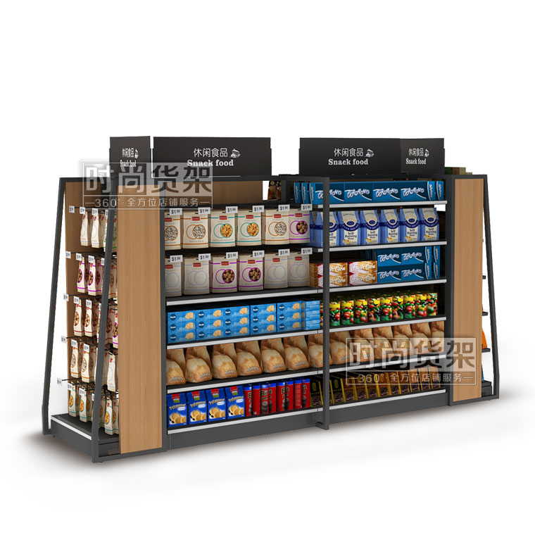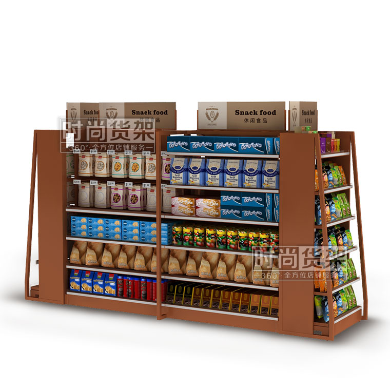 【產(chǎn)品名稱】高檔雙面中島架/品牌便利貨架/便利店木背板食品貨架