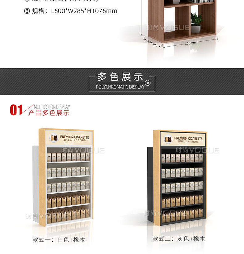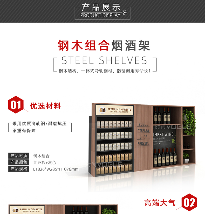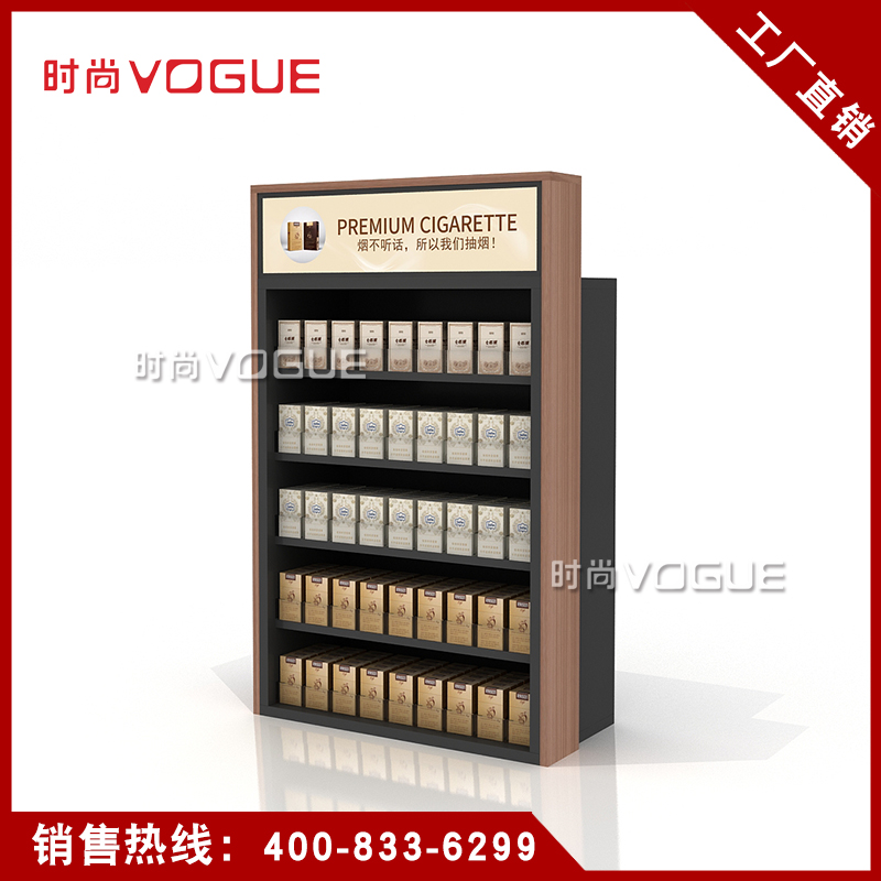 【描述】此款便利店貨架是時尚貨架為便利店收銀區設計的而一款收銀臺煙酒架。它由便利店煙架便利店白酒架收銀臺紅酒架組合而成。便利店煙酒架立柱采用優質鋼材,具有很好的承重能力。頂部配有磁吸燈箱廣告牌,即可宣傳品牌,又可以指引顧客,讓整個收銀區的工作效率顯著提高。此款收銀區煙酒架是框架式結構,可以直接放置在收銀背柜上,穩定性和安全性很好。