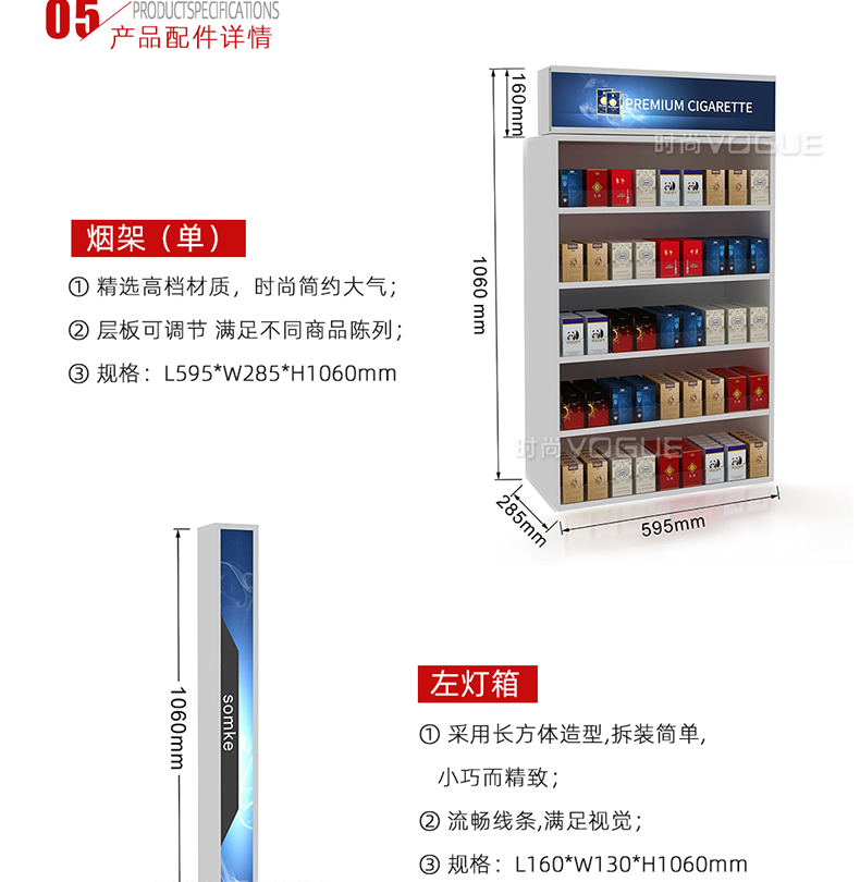 【描述】此款便利店貨架是時尚貨架為便利店收銀區設計的而一款收銀臺煙酒架。它由