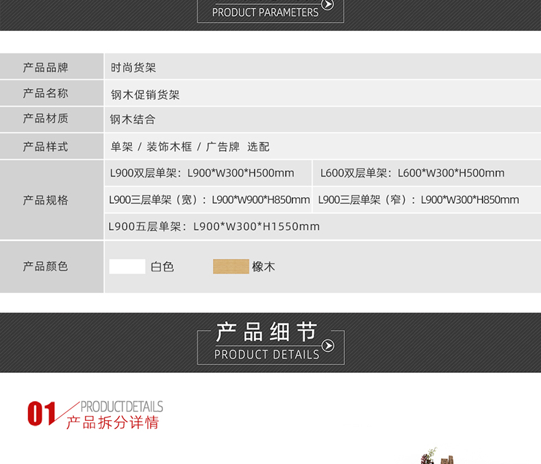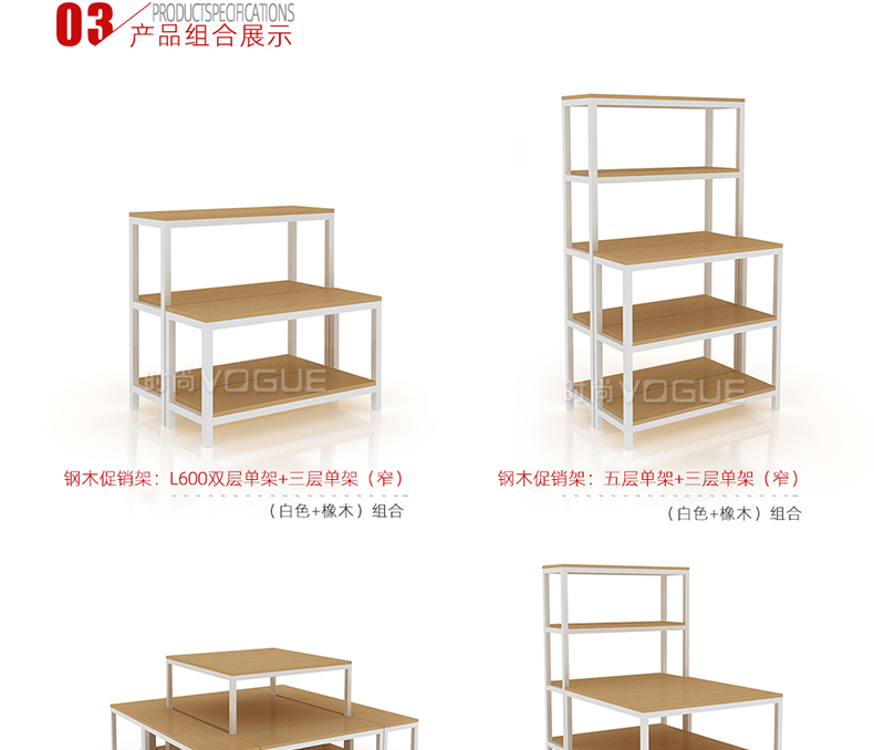【描述】促銷架采用密度板,經過多道精湛工藝,讓整個貨架具有超強承重力,使用更長久;可多種樣式組合,形成不同的視覺營銷效果,結構更加穩固;可根據需要靈活調整間距,多面陳列,可謂是“商鋪促銷神器”,具有超強儲物、展示能力;亞光的灰色,圓角的層板設計,底部采用剎車輪,小巧便捷,可根據店鋪的營銷需求隨意移動,輕松更改展示區域,也不會造成大量存貨堆積。是便利店促銷商品展示的不二之選。