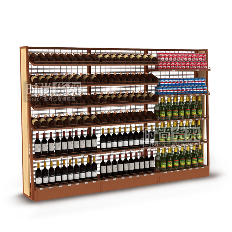 便利店靠墻紅酒架是時尚貨架為便利店紅酒區設計生產的一款高性價比便利店貨架,紅酒區便利店貨架還包括:便利店紅酒中島架,木背板紅酒單面架等。詳情請咨詢時尚貨架客服人員。