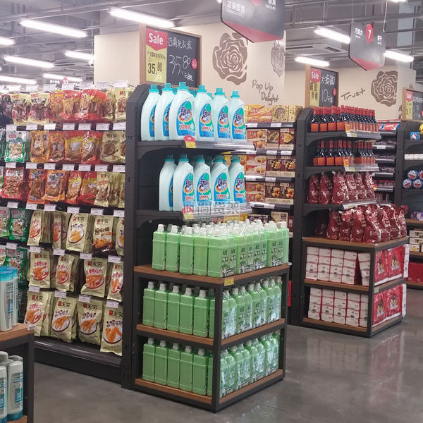 【產品名稱】精品超市鋼制雙面貨架/精品超市中島貨架/鋼木結合雙面貨架